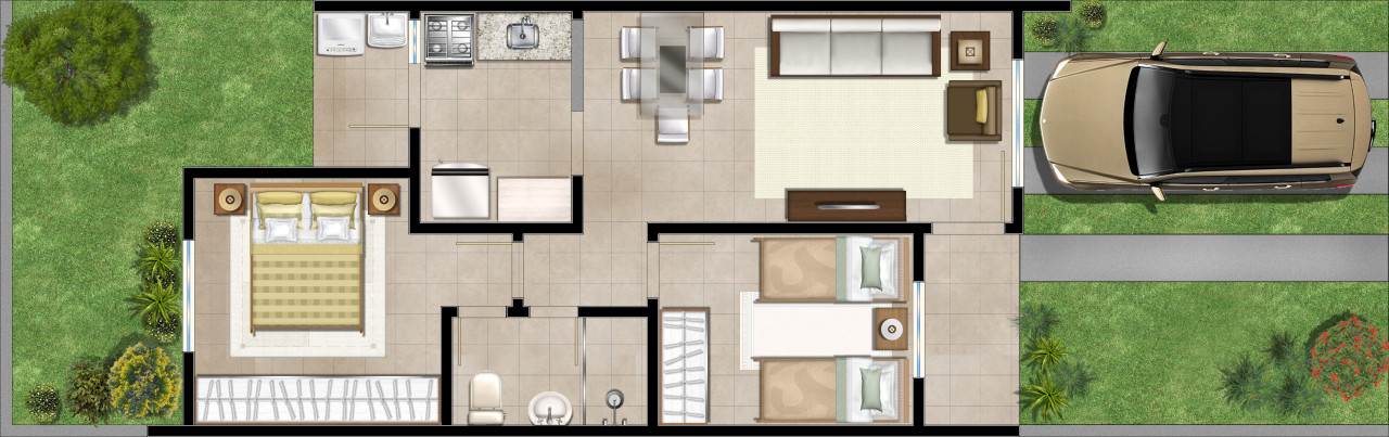 • Casas de 2 e 3 dormitórios